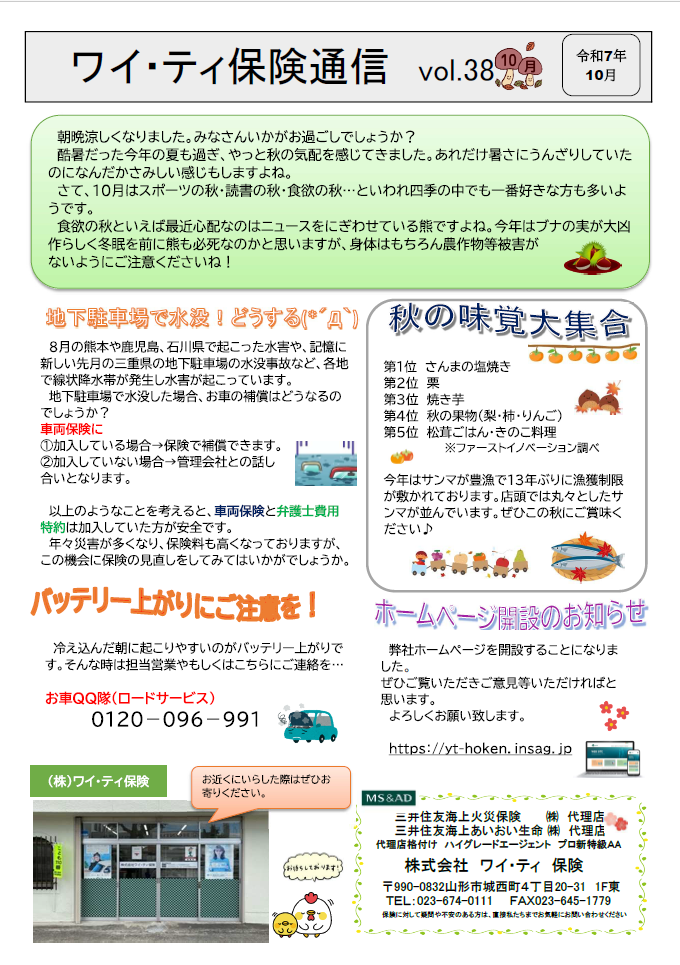2025.10.07 お知らせ ワイ・ティ保険通信 令和7年10月号 ワイ・ティ保険通信 令和7年10月号を掲載しました。是非ご覧ください。ワイ・ティ保険通信10月号.pdf↑↑↑↑↑↑↑↑↑↑↑↑↑↑↑閲覧はコチラから