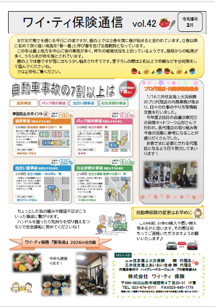 2026.02.05 お知らせ ワイ・ティ保険通信 令和8年2月号 ワイ・ティ保険通信 令和8年2月号を掲載しました。是非ご覧ください。ワイ・ティ保険通信2月号.pdf↑↑↑↑↑↑↑↑↑↑↑↑↑↑↑閲覧はコチラから